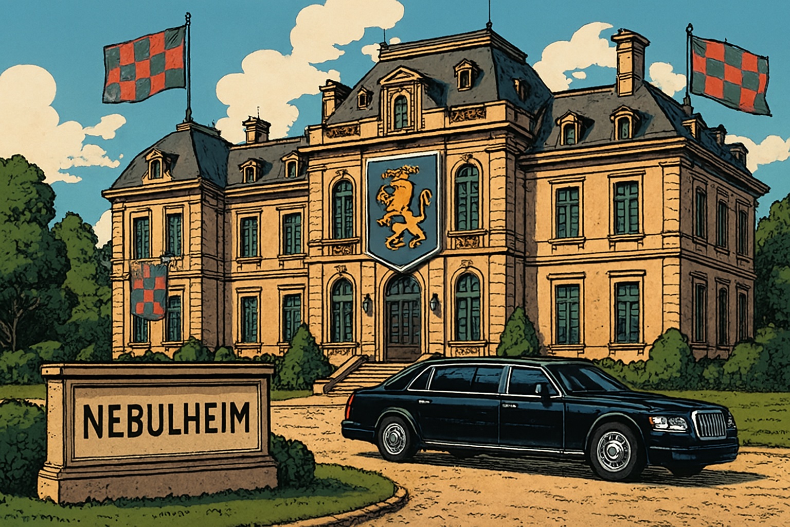 Po jakimś czasie kolumna dotarła do Pałacu Arcyksięcia w Nebulheim, miejsca gościny i balu rocznicowego. Przed głównym wejściem widać było straż dworską w paradnych mundurach Teutonii oraz podświetlone godła Teutonii, Dreamlandu.