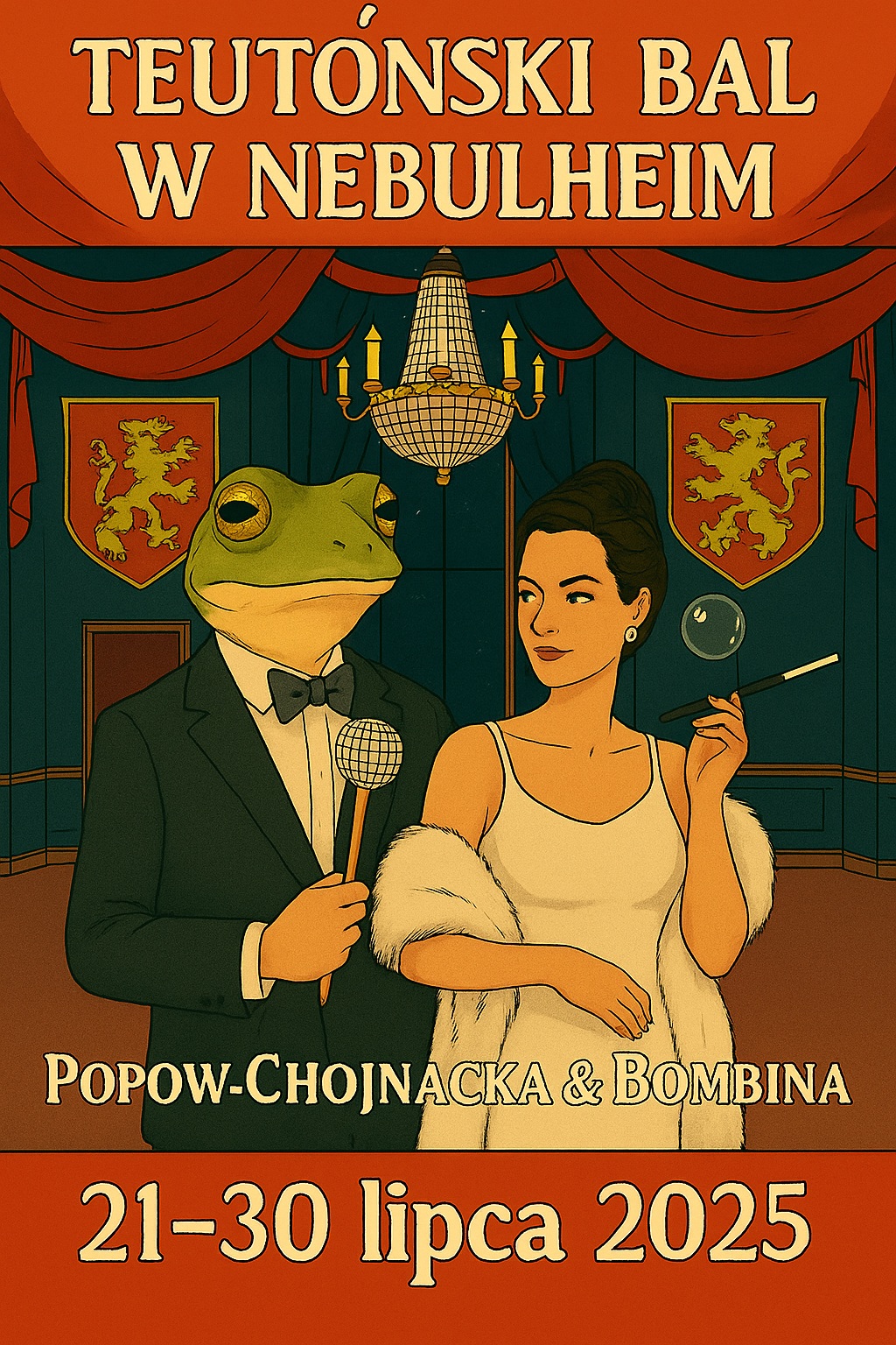 Wojciech Bombina pisze: 22 lip 2025, 00:37 Imię: Wojciech Bombina Opis: Arystokrata o głowie żaby (lecz dłoniach w cielistym kolorze) w drogim garniturze ze wzorzystą muszką. W ręce trzyma mini berło z kulą disco (Berło arystokraty, ale zamiast klasycznej głowicy – mini kula dyskotekowa, która odbija światło. Świetne połączenie „starego i nowego świata) oświetlając nim pozującą razem z nim @Fatima Popow-Chojnacka.