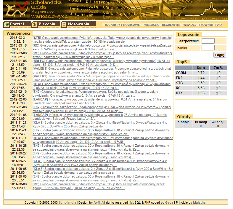 Ayve, że tak się powitam po hasselandzku. Mam takie pytanie - trafiłem akurat na zarchiwizowaną stronę giełdy scholandzkiej, czy jest tu jeszcze aktywny ktoś, kto ją współtworzył albo chociaż na niej inwestował? Mam garść pytań.