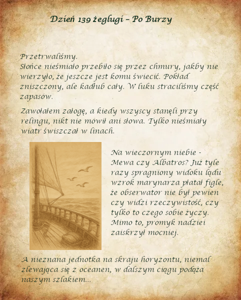 Ów chłopak zwał się Lero i bynajmniej nie jest dreamlandczykiem, sam statek również nie jest spod bandery Lilii. Cała historia jest oparta na pewnych wydarzeniach z zamierzchłej przeszłości i ma pewien ogólny nurt narracyjny narzucony z góry. Niemniej spojrzenie ze strony trzeciej osoby, będącej nieświadomym świadkiem owych wydarzeń, jest bardzo pożądane :mrgreen: